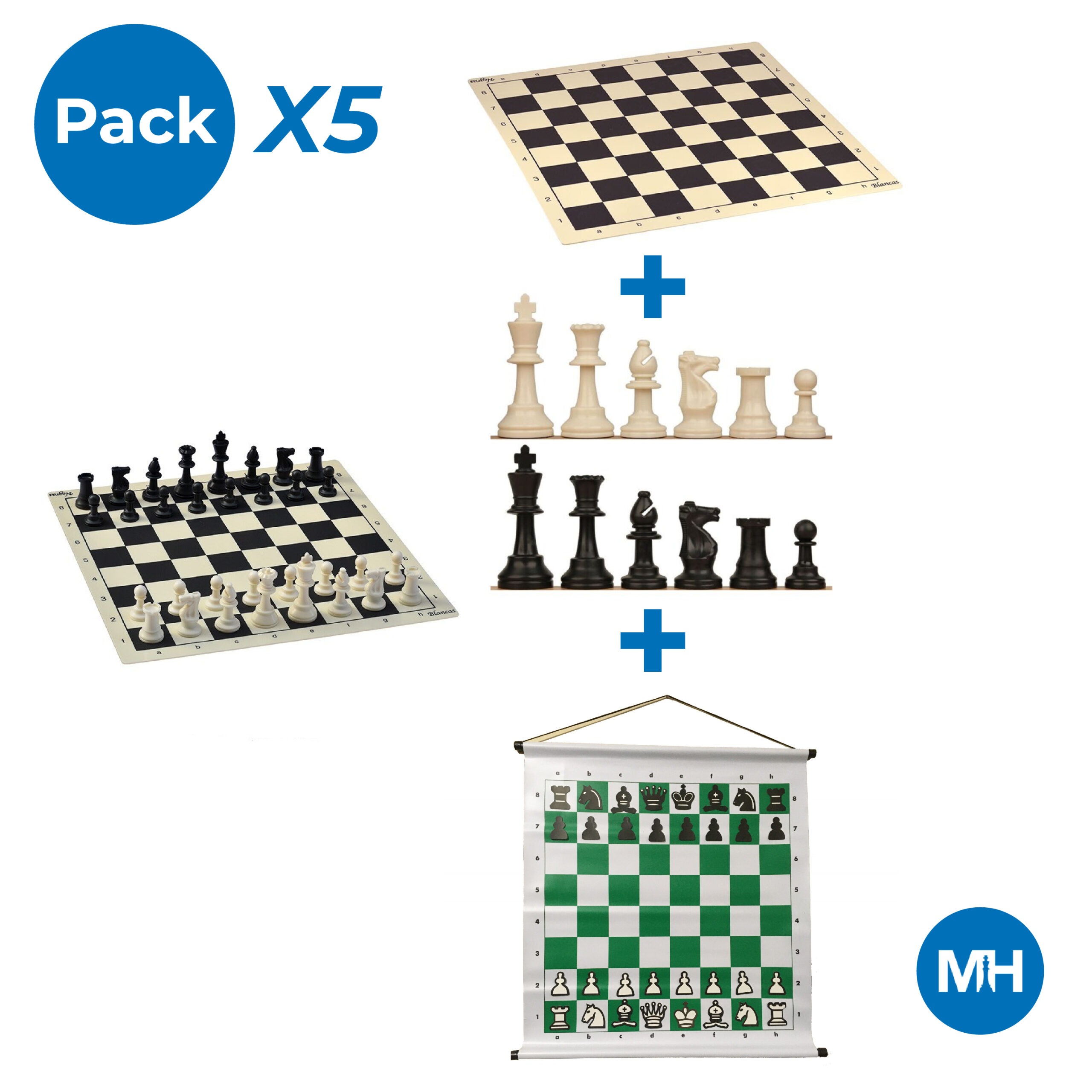 Lote compuesto por 5 juegos de piezas ligeras y tableros, y mural magnético enrollable.